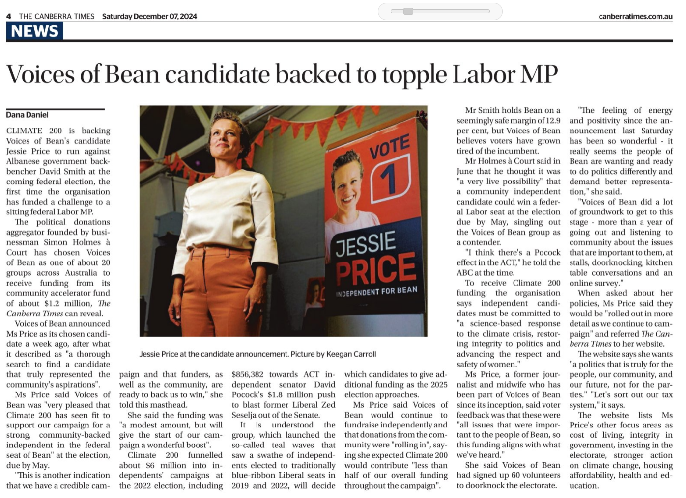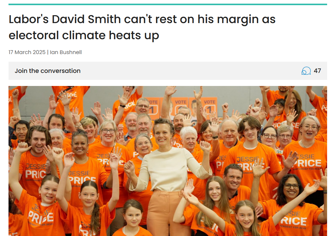 Climate independent takes on Bean’s safe Labor foe |
